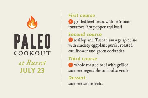 Dining out isn’t always easy for people who like to eat local and sustainable meat. Only select restaurants use local and sustainable ingredients, and it’s not always easy to know which restaurants serve what until you arrive, if at all. It’s even more challenging for devotees of the Paleo diet, who try to eat “as our ancestors ate” (read: lots of meat). But last night at Russet, a Rittenhouse restaurant committed to local sourcing and whole animal cooking, husband-and-wife chefs Andrew and Kristin Wood cooked a special pre-fixe menu that met the meat-eating needs of both groups.